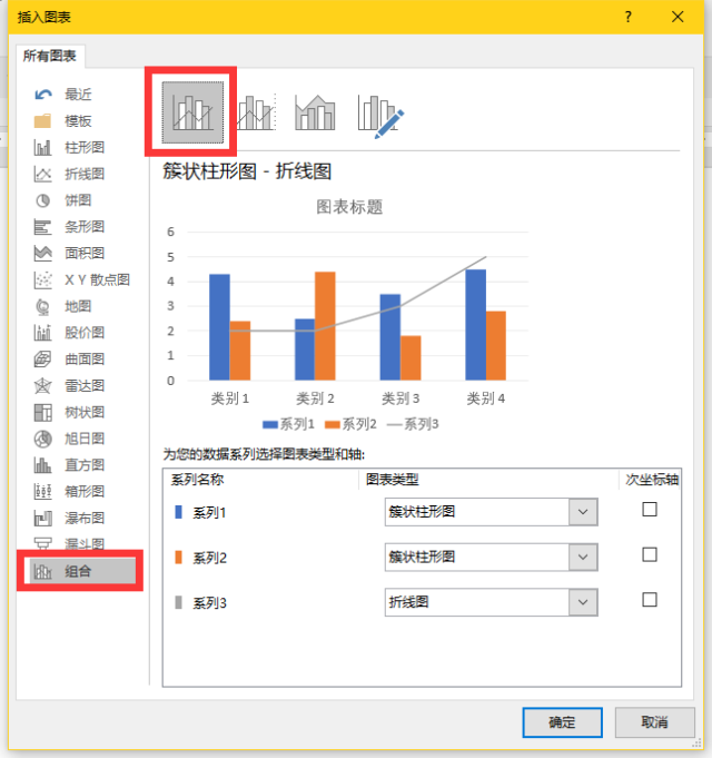 第一步:插入组合图表