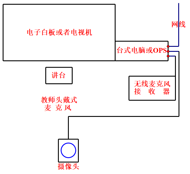 有条件的还可以添置摄像头,摄像头对着讲台,获取教师上课的图像或者是板书的内容。摄像头需要接入电脑,放在学生中间。
