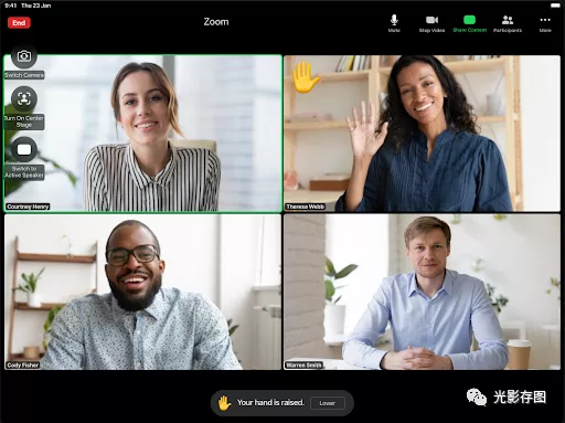 在这个模式中,主持人和共同主持人还可以选择在图库视图中查看参与者,使他们能够同时查看所有参与者。