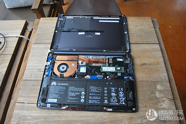 内部情况,上半部分为笔记本主要硬件分布,下半部分为笔记本电池。