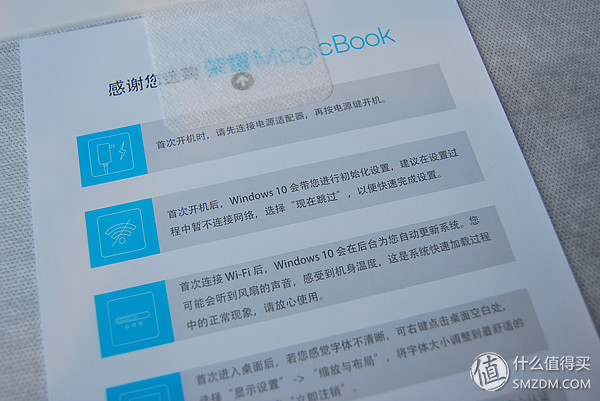拿出产品前,先看到的一张使用荣耀MagicBook感谢单。