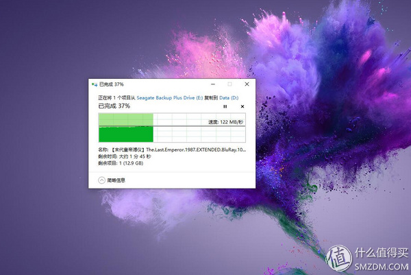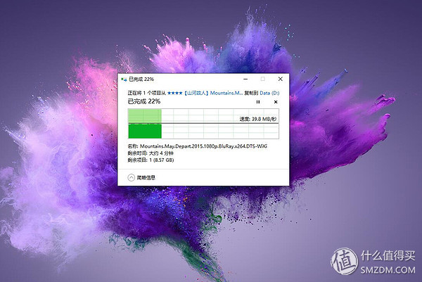 (2)右侧USB接口:将一个11.0GB大小的电影复制到电脑中,花费了4分47秒,平均速度为39.2MB/秒。