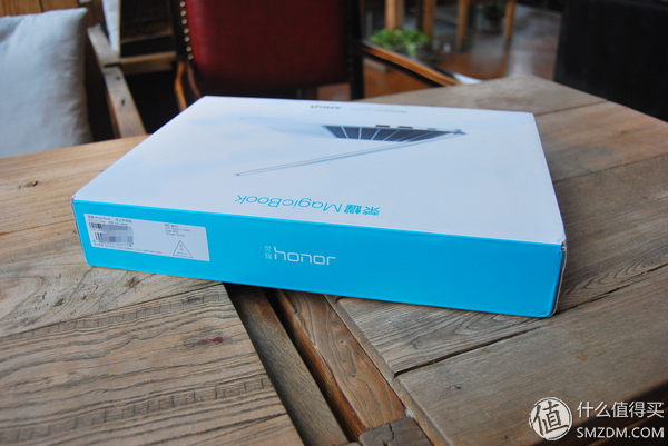 荣耀MagicBook外包装尺寸本身就不大,我手动测量数值为:36cm*27cm*6cm。外包装正面为笔记本渲染照片,简洁的风格。