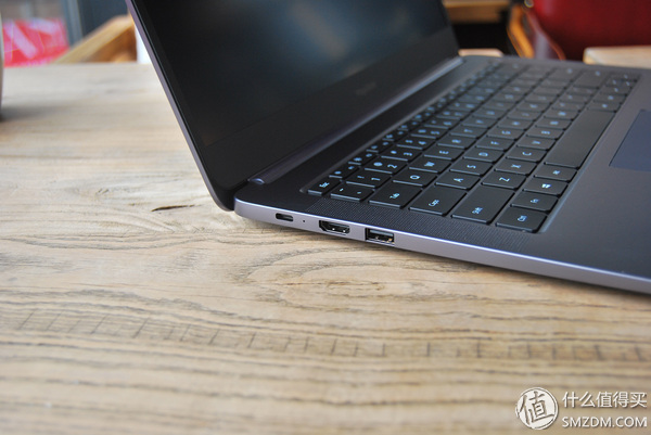 在笔记本的左侧边,有三个接口一个指示灯,从上到下依次为type-c接口、充电指示灯孔、HDMI接口、USB口。
