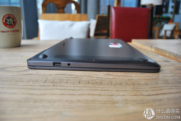 右侧边则是USB口和3.5mm音频接口。其实作为一款办公娱乐本来说,USB接口不算多,只有两个,所以如果需要外接键盘鼠标的话,最好能选择蓝牙产品,这样可以节省宝贵的USB口给U盘和其他设备备用。