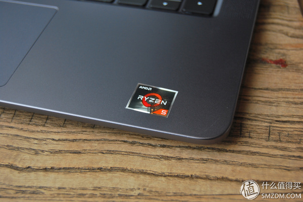 笔记本C面右下角有AMD的RYZEN5标。标明了其内置锐龙5的处理器。
