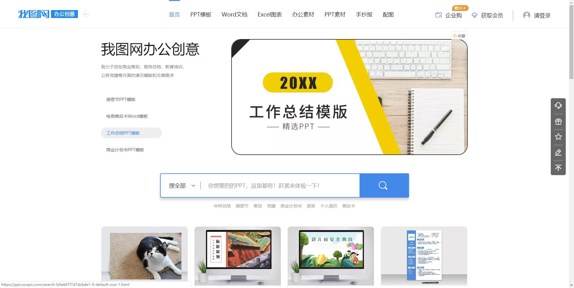 我图网创意办公专区包含了PPT模板、Excel模板、Word模板、办公素材、手抄报、字体、配图等,