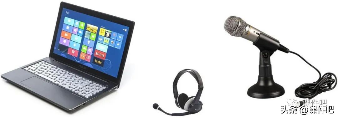 通过屏幕录制来制作微课视频的一种常用的方式是录屏软件+PowerPoint组合。其中,录屏软件用于录制屏幕内容和语音讲解,常用的软件如Camtasia Studio、YouCam或Free Screen Recorder等。PowerPoint在这里用于展示微课的内容,之所以选择PowerPoint,是因为PowerPoint是当前最为常用的课件制作软件,其操作简便、功能强大而且相关素材资源丰富。这种方式需要的硬件比较简单,只需要计算机、耳麦(自带话筒)或独立的话筒就可以了,如图5所示。
