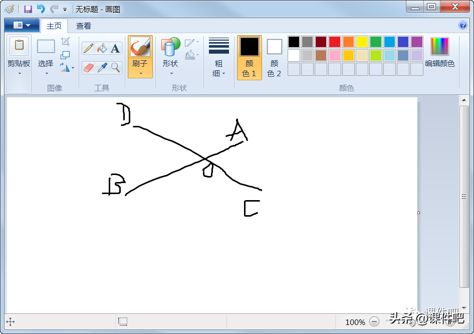 实际上,如果没有专业的白板软件,还有两种替代方案。第一种方案是使用Windows系统自带的画图软件,打开该软件后使用软件提供的绘图工具在画布上涂画,也可以达到手写的目的,如图9所示。