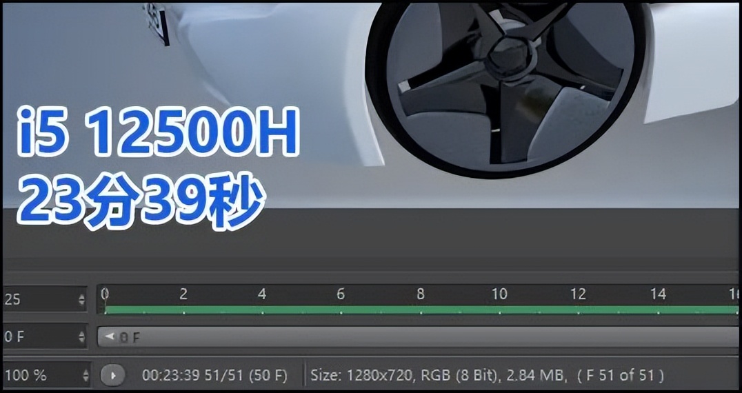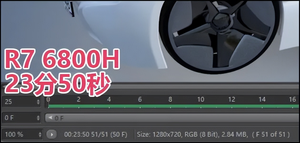 既然前面做了三维渲染的基准测试,那么两款Neo 14在实际的三维渲染应用中表现如何呢?我们直接请出Cinebench的“真身”Cinema 4D,它广泛应用在广告宣传、产品设计、动画设计和游戏场景的设计中。由于两台Neo 14的处理器功率输出都比较高,所以也能胜任简单的建模和渲染应用。我们用它渲染2秒的汽车旋转动画(共计51帧画面),纯吃CPU部分的多核性能。