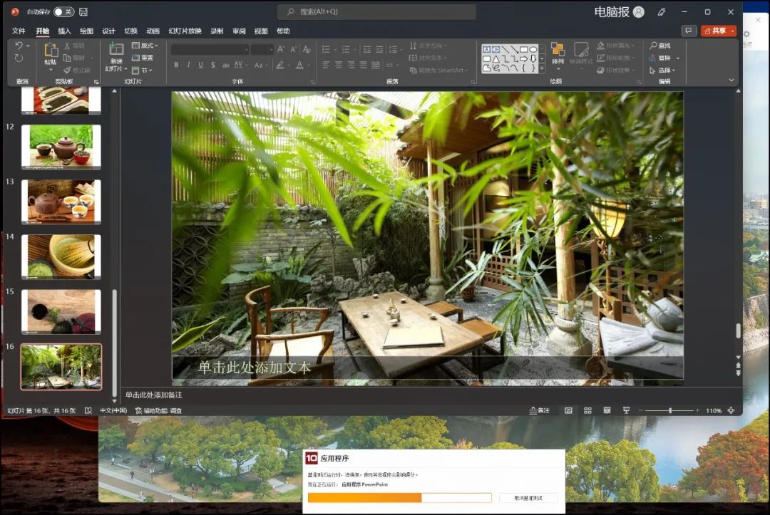 ▲这是PCMark10应用程序测试的过程截图,当前正在进行PowerPoint测试。