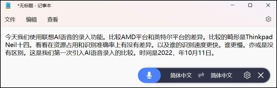 ▲这是AI语音录入的对比,两个平台完全一样,连错误都一样,且资源占用率很低,看来这一应用和硬件平台的选择关联不大——至少如今的硬件性能下早已不是问题,更多是看AI引擎本身。