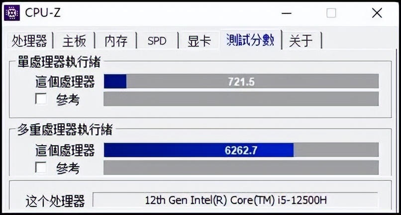 ▲CPU-Z基准性能,单核为626分和722分,i5 12500H领先多达15%!多核为6042分和6263分,i5 12500H领先幅度为4%!