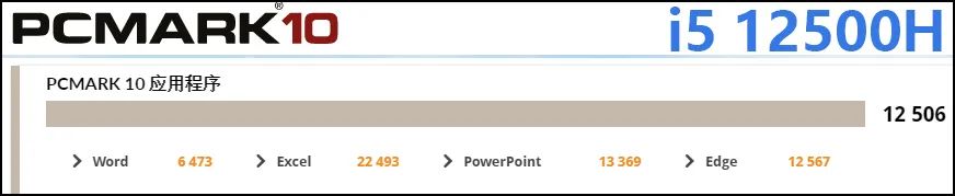 而作为“商用本测试”,这次我们更有针对性地引入了“PCMark10应用程序”测试。相对于PCMark10基准测试使用的并不常见的办公软件和浏览器,PCMark10应用程序测试直接以Office三件套(Word、Excel、PowerPoint)和最新的微软Edge浏览器为测试对象,完完全全可以反映办公和日常应用性能——注意,这个测试是引入了GPU加速的,尤其是基于网页的多媒体应用,基本都是靠GPU加速。
