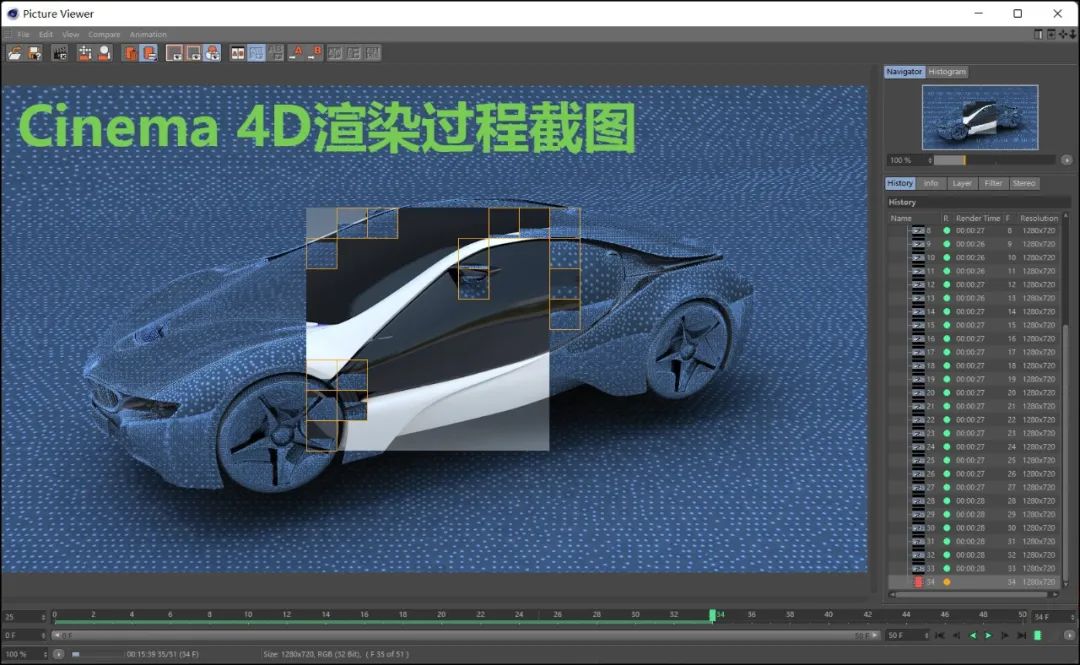 ▲这是渲染过程截图。点击放大,大家可在右侧看到每帧画面的渲染耗时。