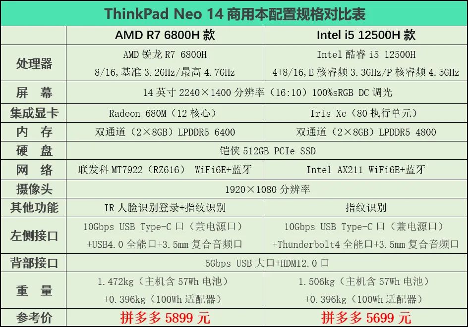 ●如果单位采购时非常看重续航,则优选锐龙R7 6800H款——但这里有个矛盾点:通常特别看重续航的用户,对性能的需求是偏弱的。既然如此,似乎就没必要选Neo 14这样的中高端机型了,便宜的入门商用本也有很多选择。
