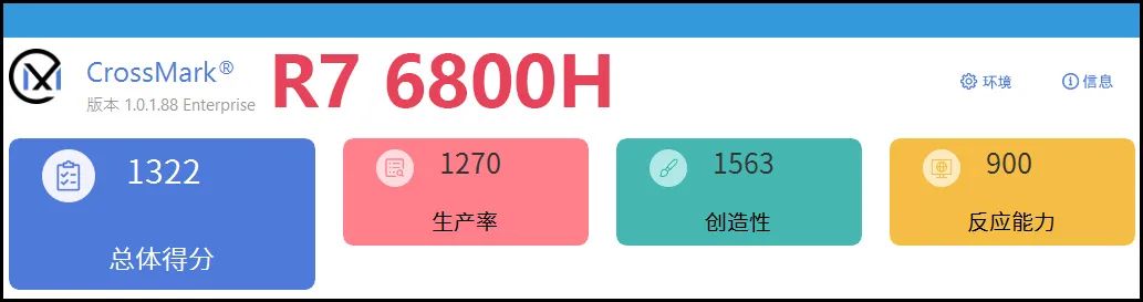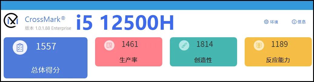 当然我们也要明确,ThinkPad Neo 14作为商用机,“第一要务”还是办公和日常应用。那么在这两个应用层面,CPU的表现谁好呢?这里,就必须要请出跨平台、跨系统的日常应用测试软件CrossMark了:作为一款综合了轻量级的生产力应用(文档、表格等)、简单的创造性应用(设计和多媒体等)和反应能力的综合测试软件,CrossMark有个特点是它只考验CPU性能,基本不涉及GPU性能。