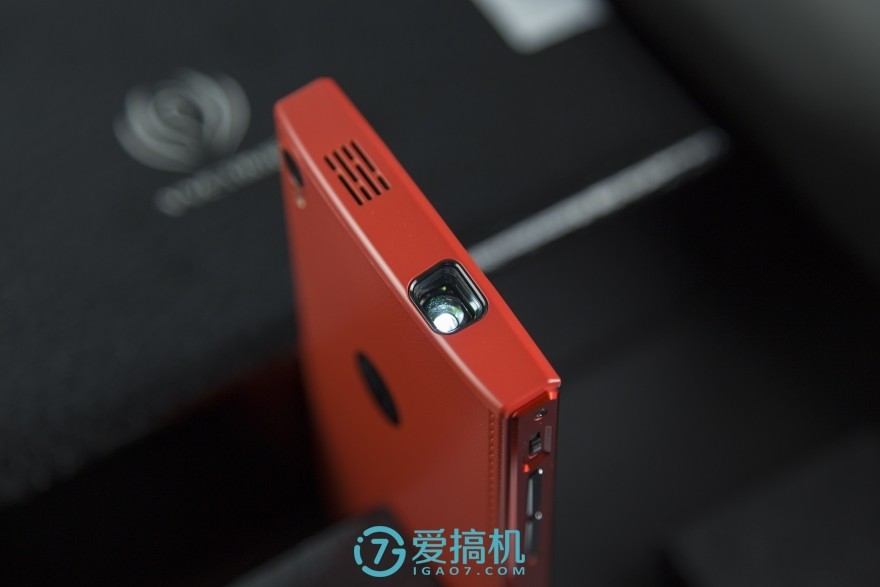 边框两侧在对称位置有两排开孔,这两排开孔是为了解决投影模组的散热问题,既起到进气的作用,也能辅助散热,毕竟与普通的手机不同,投影模组历来都是发热大户。