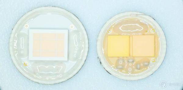 掀开透镜,内部结构一目了然,iPhone 13 Pro 是将灯珠分为冷暖两片,而 iPhone 14 Pro 则将整块灯源切割成不同尺寸,拍摄时依据拍摄物体的焦距调整九个 LED 的组合。并且新的闪光灯在亮度上更高,主摄获得 2 倍提升,超广角 3 倍。