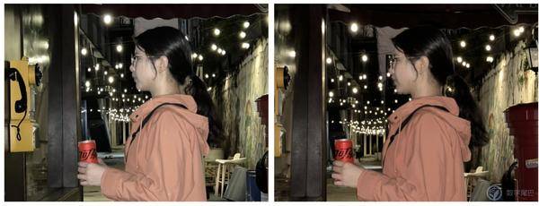 在发现两者闪光灯色彩还原差异后,我们把注意力放在画面观感上,发现了更多细节。