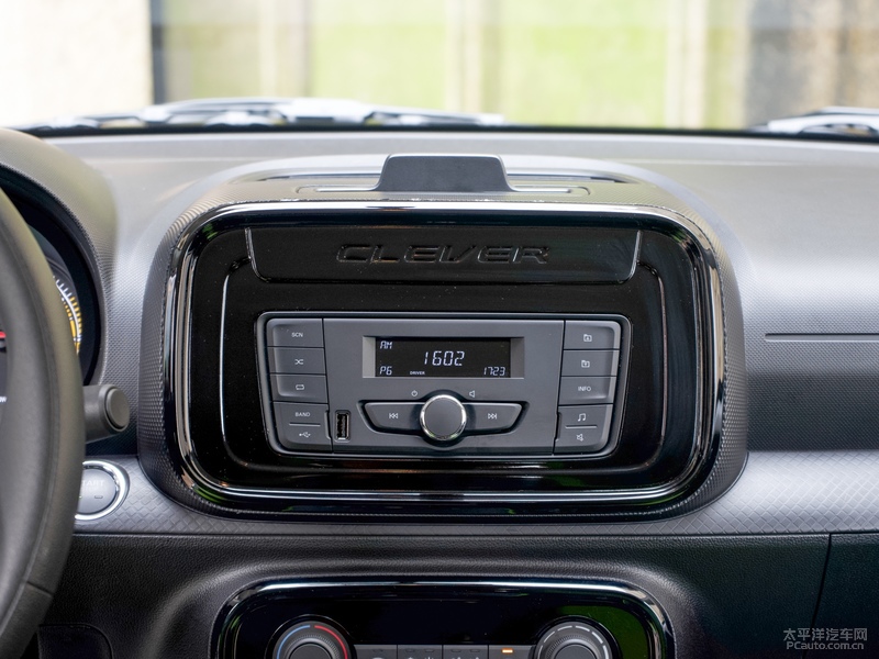 配置方面,简洁的双幅式多功能能方向盘,支持上下调节,指针式机械仪表盘加上中间黑白的电子屏能够清晰显示车辆信息,一切都以实用为主。此外,科莱威CLEVER并没有搭载中控屏,仅有一个CD机,显得有些年代久远。中控台上方有个手机卡槽,使用手机导航时可以将其固定于此,细节方面的考量还是值得点赞的。