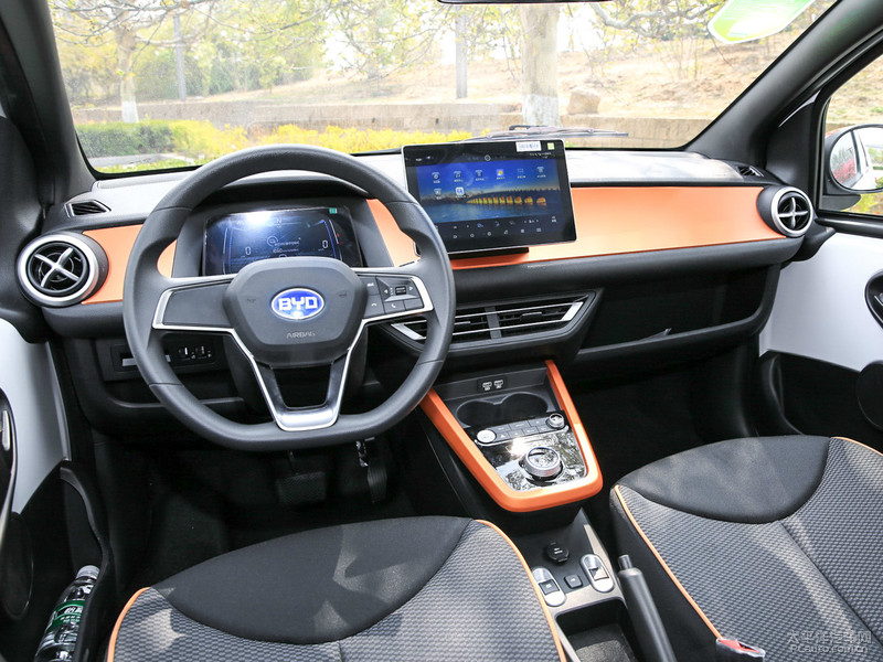 比亚迪e1的配色上与外观设计相呼应,采用了比亚迪家族最新的设计语言,仪表台简约的风格视觉效果更加的直观,不仅如此,e1在用料与工艺水平上没有特别廉价的感觉,在成本范围内,这可是个加分项,毕竟,廉价感一直以来都是这个价位大部分产品当中常见的痛点。此外,液晶仪表盘与可翻转的中控液晶屏幕也提升了档次感。