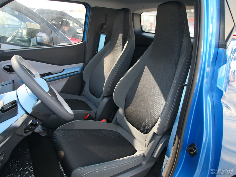 目前在售的宝骏E200仅提供2款车型,受限于成本因素,均采用了织物座椅,好在包裹性和支撑性都不错。同时,由于电池组占用底部空间,所以座位比较高,坐上去有种开货车高高在上的感觉。而且一体式座椅只能前后移动不能高低调节,方向盘位置也比较低,所以很难找到一种符合人机工程学的驾驶坐姿。不过前方视线倒是挺开扬,女司机可能会从这种高坐姿中收获更多的安全感。