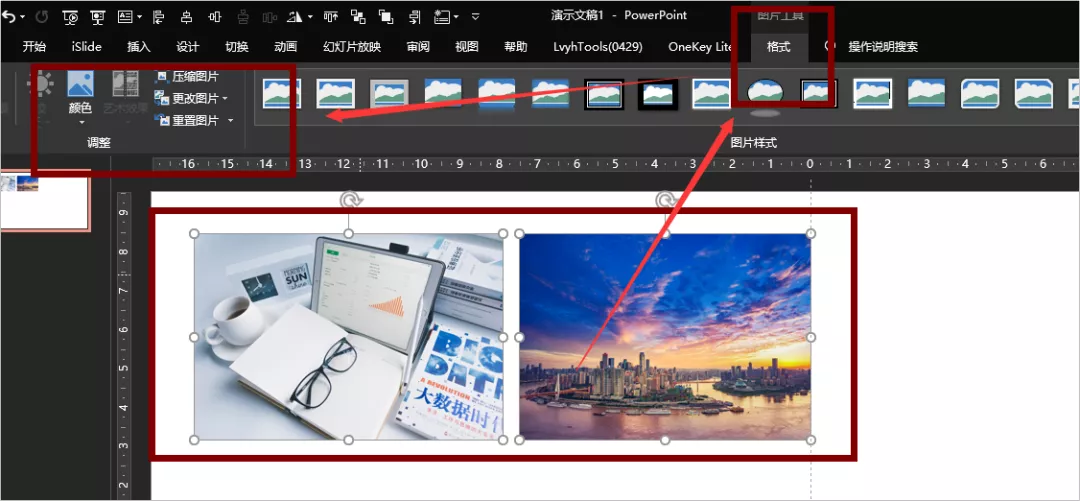 当你同时选择多个形状或者图片时(至少要有一个是形状),这些按钮就会出现。