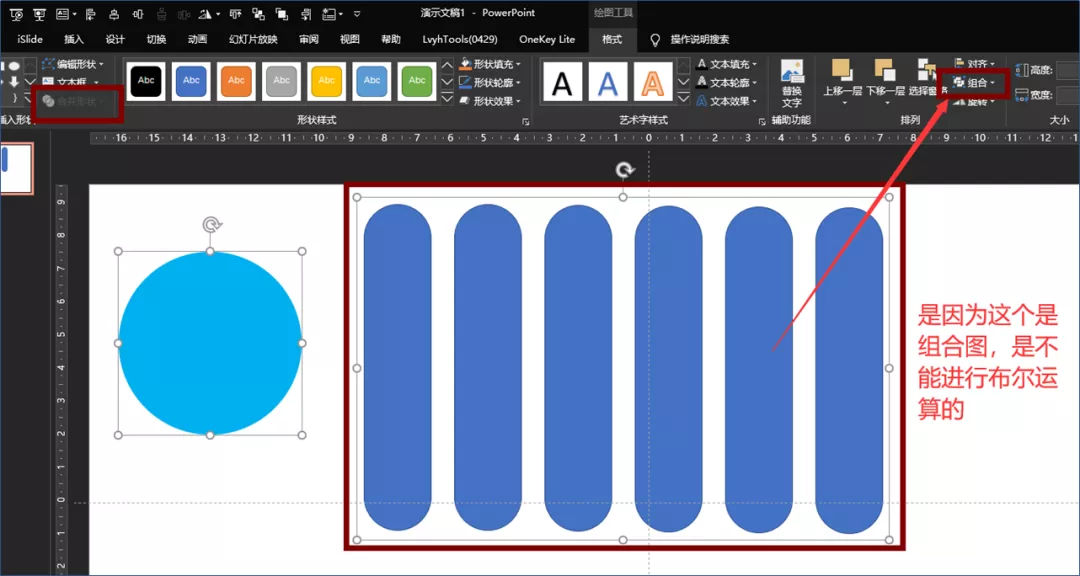 大家有没有发现,【合并形状】里有个“组合”,在右边的角落也有一个“组合”。