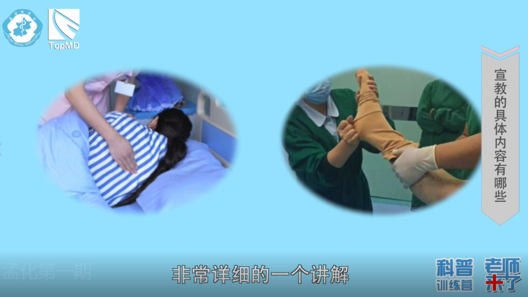 宣教过程中以PPT的形式,同时穿插一些小视频,比如说拍背怎么拍、袜子怎么穿,非常详细的讲解,然后还会发一些纸质版的宣传材料,同时还加入一些小道具互动起来,进行健康宣教。