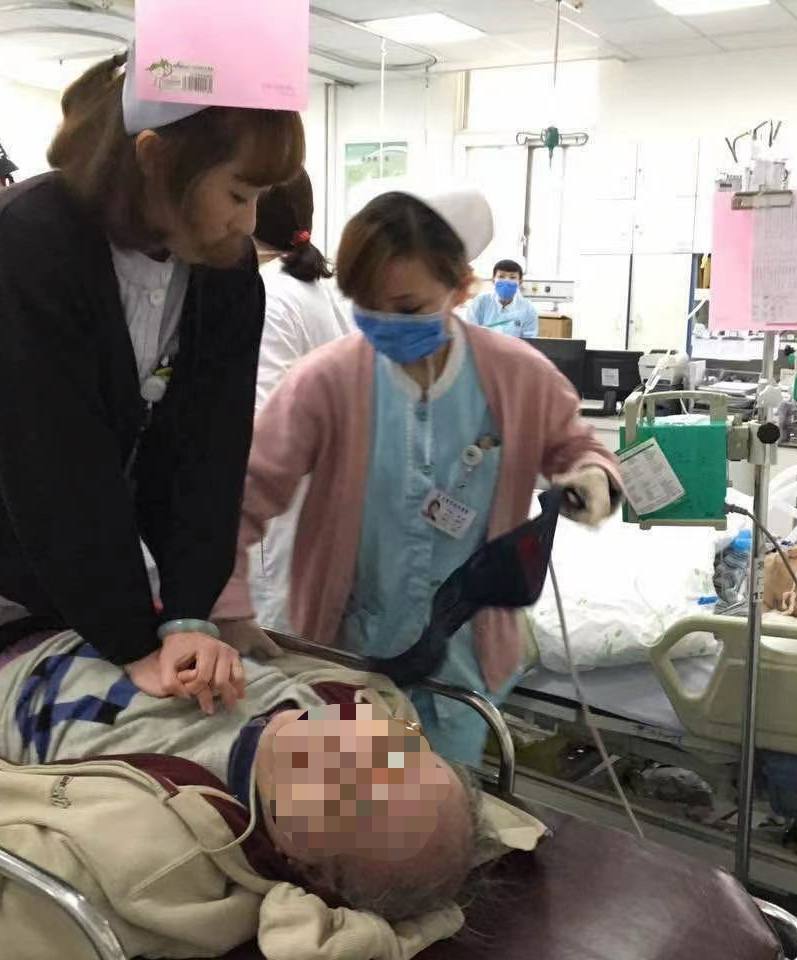 导医王子雯在给门诊就诊患者进行心肺复苏。受访者供图