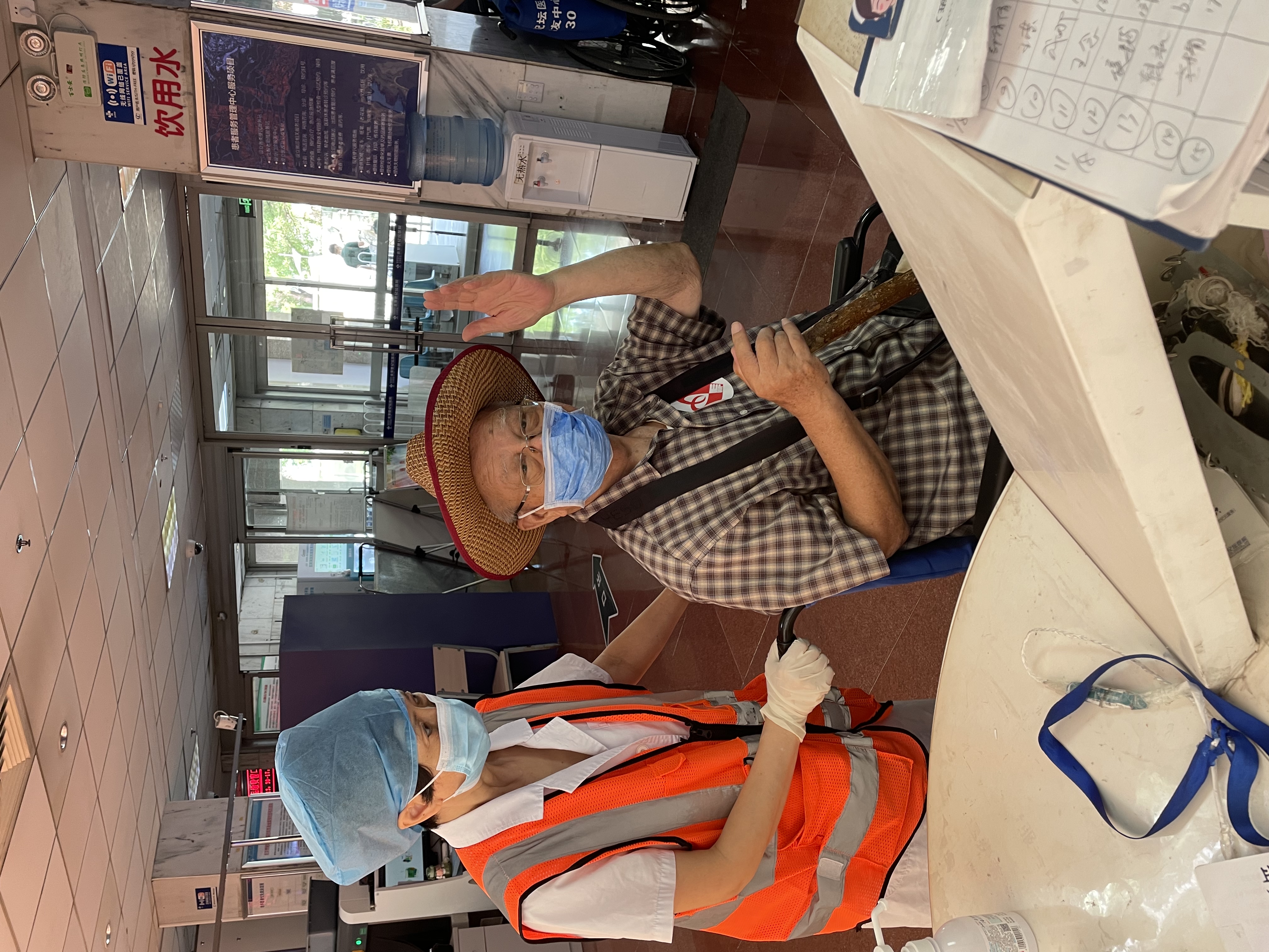 她还设计了“一颗心”。看到独自一人来医院看病的老年人,保安会在门口给他贴上一个红色心形小贴纸。进入医院后,导医会一路帮助他。