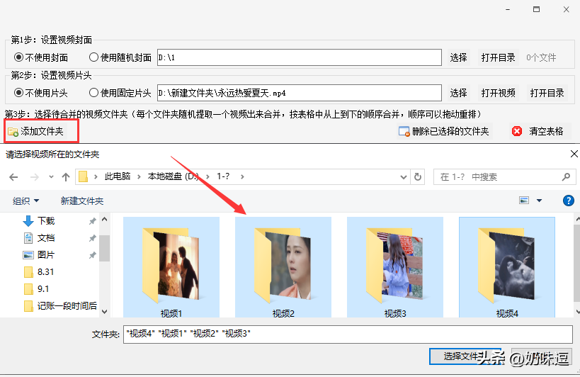2.所需工具安装一个媒体梦工厂视频素材若干操作步骤首先,剪辑之前,将视频放在各个文件夹中,一个视频一个文件夹保存打开【媒体梦工厂】,在“嵌套合并”中,封面、片头片尾没有需要可以不设置直接进入第三步,单击“添加文件夹”,弹出对话框,选中这些保存视频的文件夹,并点打开,即可导入接着开始预设新视频的标题,支持一行输入一个标题,合并的时候会按顺序选择标题然后设定合并选项,将选项切换为“AI智能生成:1个新视频”,再去合并等全部合并完成,打开文件夹,双击新视频查看,播放时长较长,且播放内容各不相同最后打开原视频对比一下,原视频播放时长较短,且播放内容都是相同的,说明合并成功
