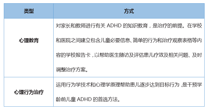 常用注意缺陷多动障碍治疗,如下表5。