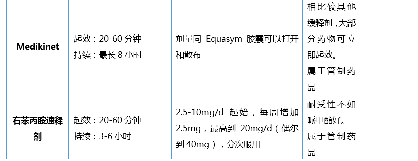 (5)赖右苯丙胺:初期的研究表明。其效应值至少和Oros-哌甲酯一样大。其不良反应也类似。长期治疗的数据提示,可以考虑将它作为缓释哌甲酯的替代药物[6]。