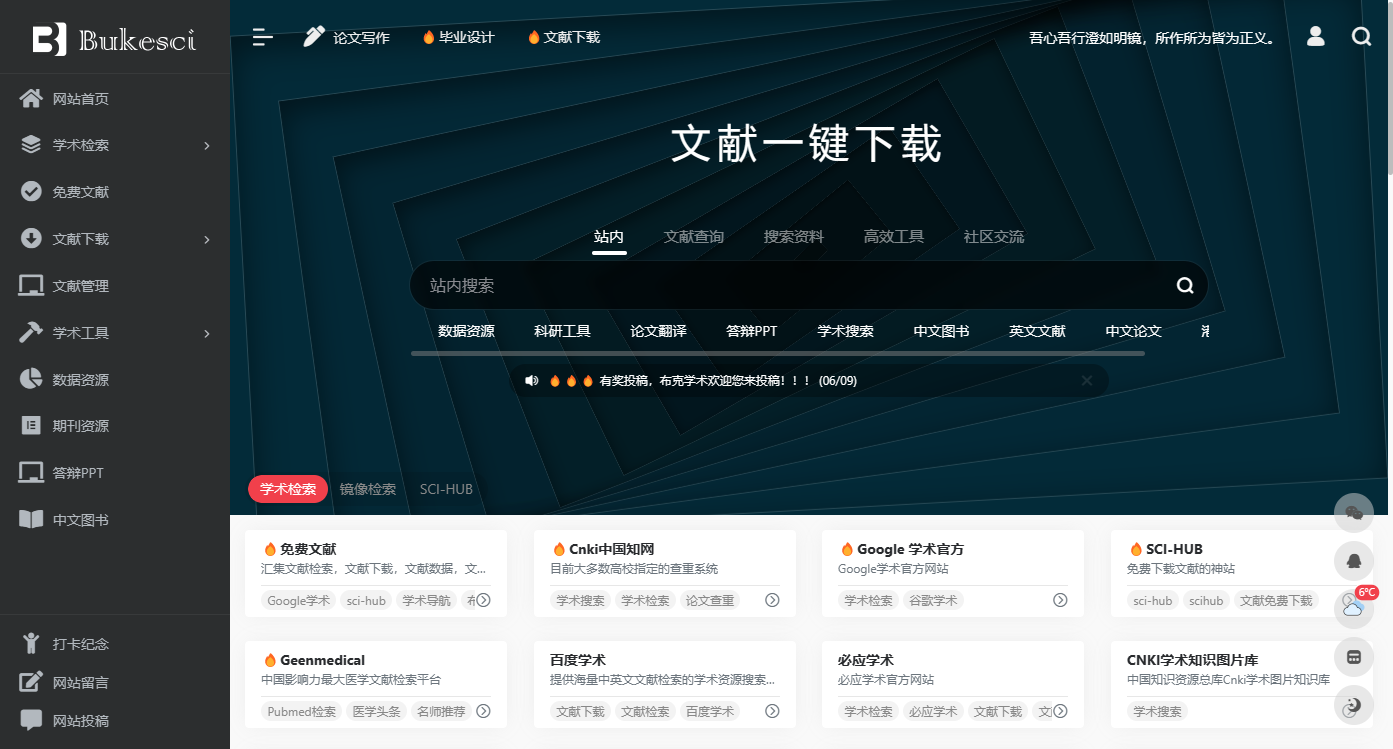 一个聚合类网站,有快搜、图书搜索、学术搜索等分类。侧重于搜索引擎类的网站,可以看作一个导航网站。学术搜索方面提供了常用的搜索引擎和数据库网站。用过很长一段时间。