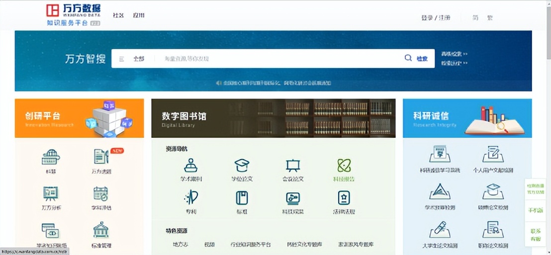 由万方数据公司开发,涵盖期刊、会议纪要、论文、学术成果、学术会议论文的大型网络数据库;也是和中国知网齐名的中国专业的学术数据库。其开发公司——万方数据股份有限公司是国内第一家以信息服务为核心的股份制高新技术企业,是在互联网领域,集信息资源产品、信息增值服务和信息处理方案为一体的综合信息服务商。