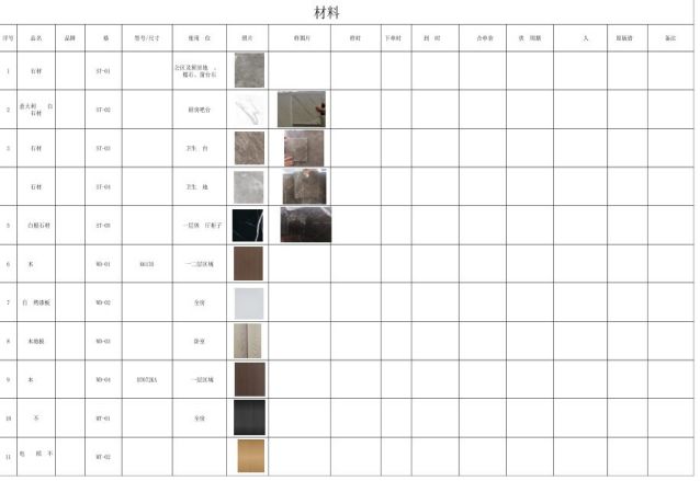 接下来,王经理会将整个精装项目的材料列一个详细清单,分甲供、乙供、甲指乙供三类,然后写上设计样确认时间、施工样确认时间、订货时间、生产周期、到货时间、材料供应商电话信息,方便随时跟踪。