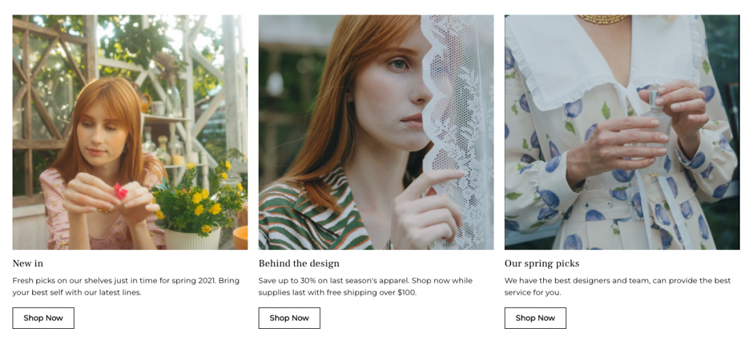 Sansa 负责运营一家海外女装独立站已经有 3 年了。对于店铺装修,她有着自己的见解。“我们公司售卖的女装种类非常多,不同款式的女装有不同的风格,我们需要用不同的形式来展示。”
