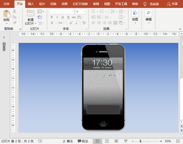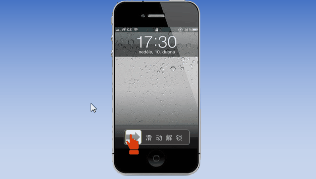 众所周知,现在的智能手机锁屏后解锁方式大致有:滑动后输入数字密码或画图案、指纹解锁、生物识别(如面部识别)等。下面以iPhone4/4S为例,在PowerPoint软件中模拟制作一个页面的滑动解锁动作,解锁后进入手机界面。