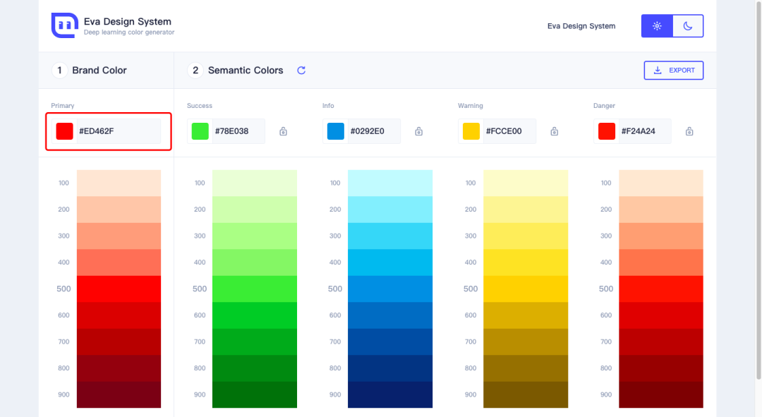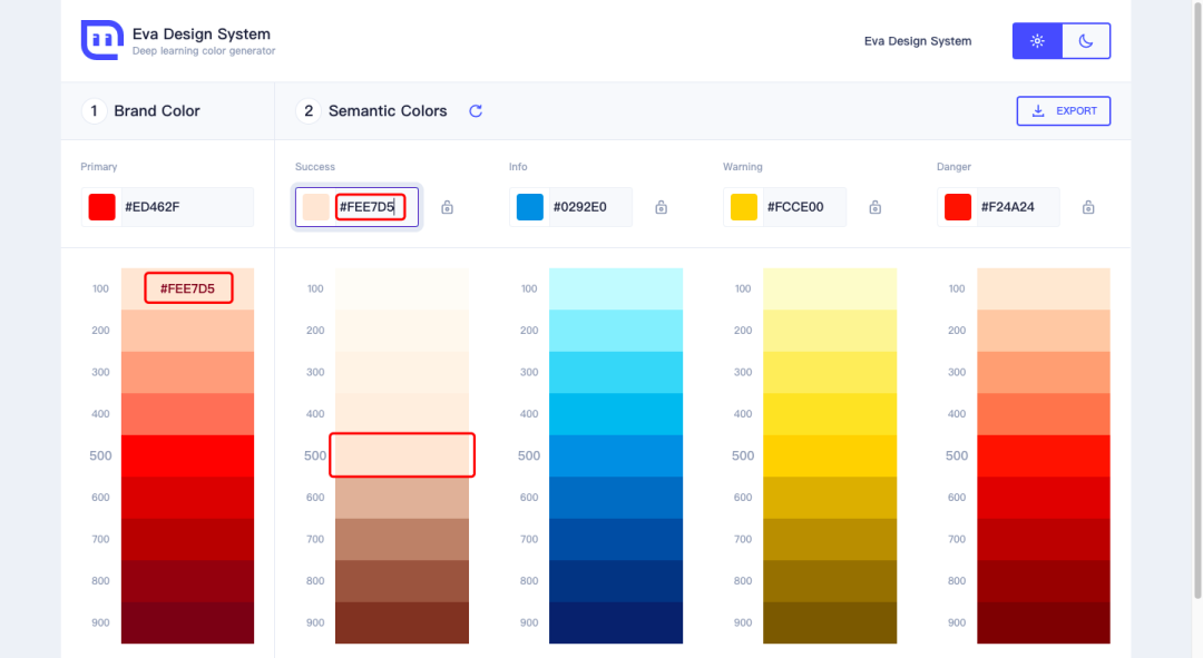 03. 确定好主色的色值后,我们打开配色网站:https://colors.eva.design,输入十六进制的色值到上方的输入框内,记得前面留下“#’,输入后,颜色会自动更改。