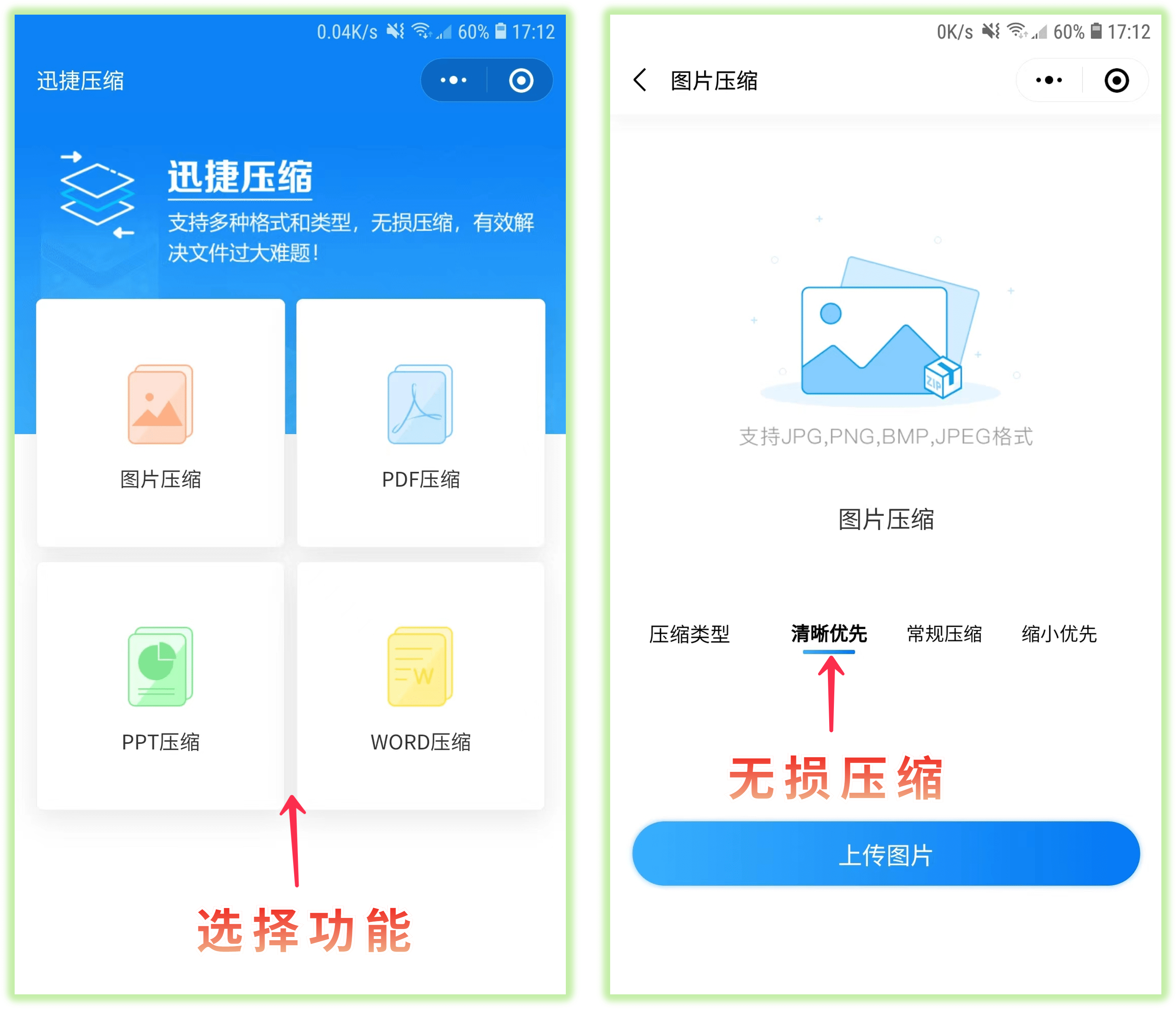 经常用微信办公,接收到的图片、PDF、Word、PPT各类文件,不仅数量多,体积也很大。在小程序里有个【迅捷压缩】工具,可以帮你无损压缩这些文件,有效节省手机空间。