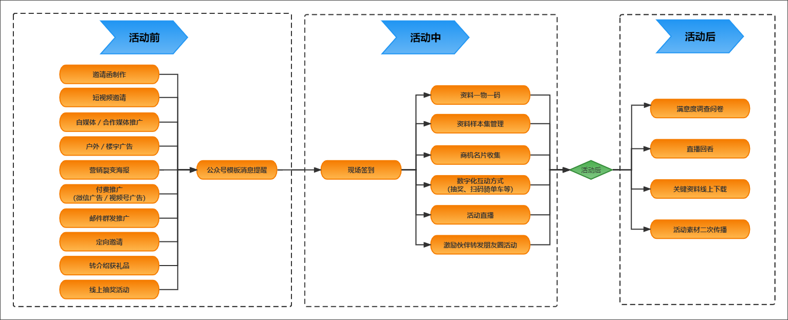 本篇文章的目的就是在于展示营销系统赋能活动(展会/会议)组织的标准化流程。希望借此机会为大家提供系统的使用场景和使用方法的参考。