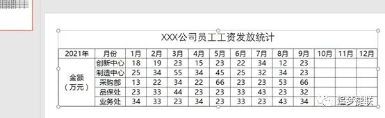 4、粘贴后结果如下,在PPT中该表格相当于图片,无法修改内容。大家不用着急,你在原来复制的Excel文件中修改就可以了。你可以试试看,是不是Excel里面已修改完,切换到PPT,发现对应位置内容就跟着变更了?