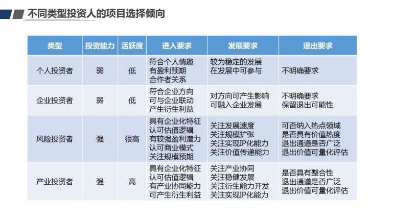 那么,有可能在非遗产业进行投资的是谁?投资者的种类非常的多,我梳理出一些可能非遗的投资人类型,上我们看看他们的特点。