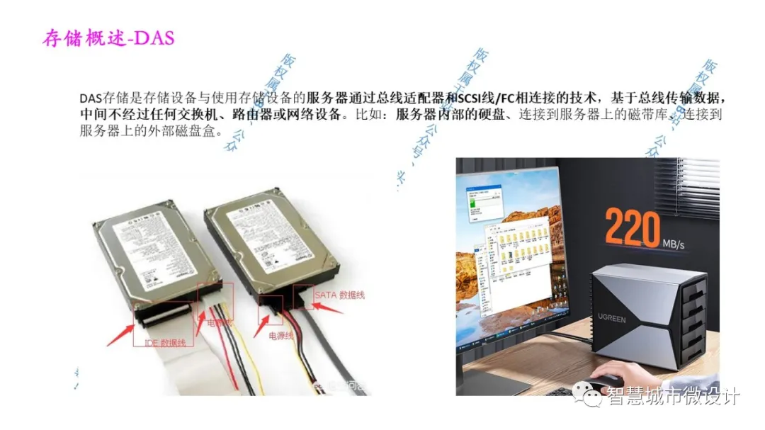 它结构上允许服务器和任何存储磁盘阵列或磁带库相连并直接存储所需的数据。