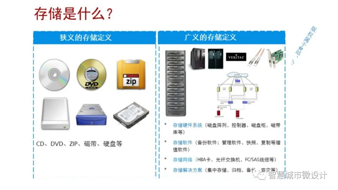 SAN概念存储区域网络SAN是将存储设备(诸如磁盘阵列、磁带库、光盘库等)与服务器连接起来的网络,也叫存储专用网络。