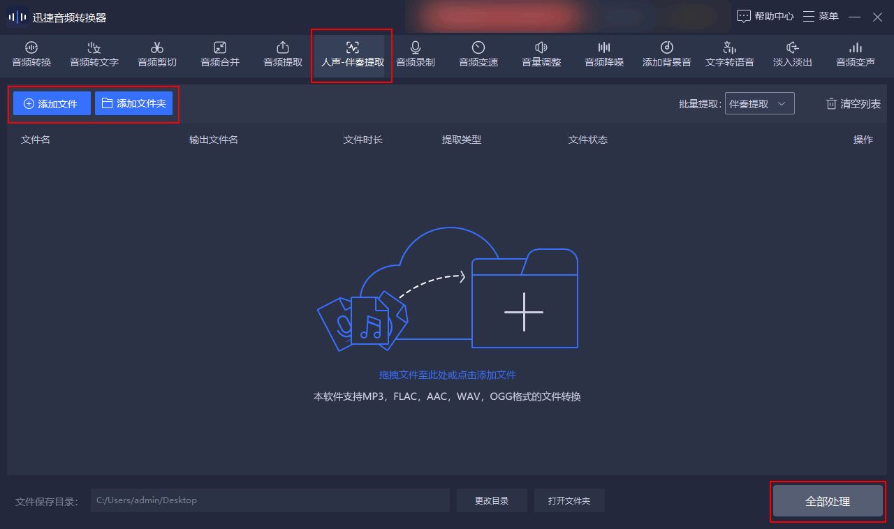 软件介绍:迅捷音频转换器是一款功能多样的音频处理工具,它不仅可以将不同格式的音频文件进行转换,还支持剪切、合并、提取等多种功能。而提取歌曲伴奏也是它拥有一项功能,借助这个功能大家可以轻松地将歌曲中的伴奏部分提取出来。