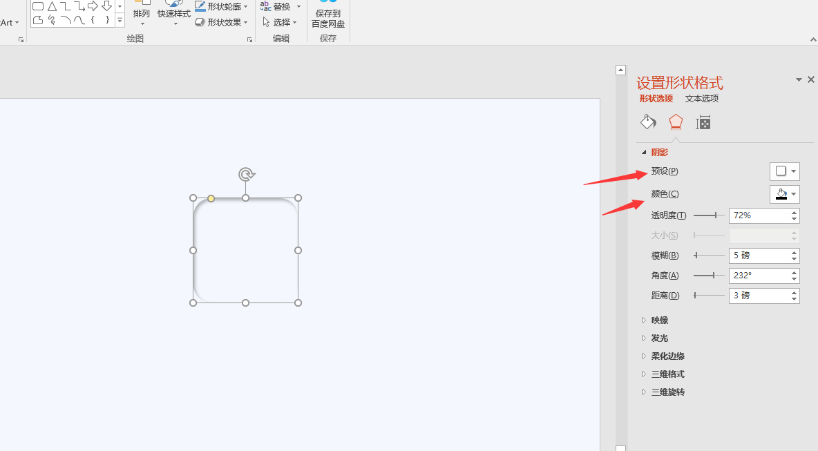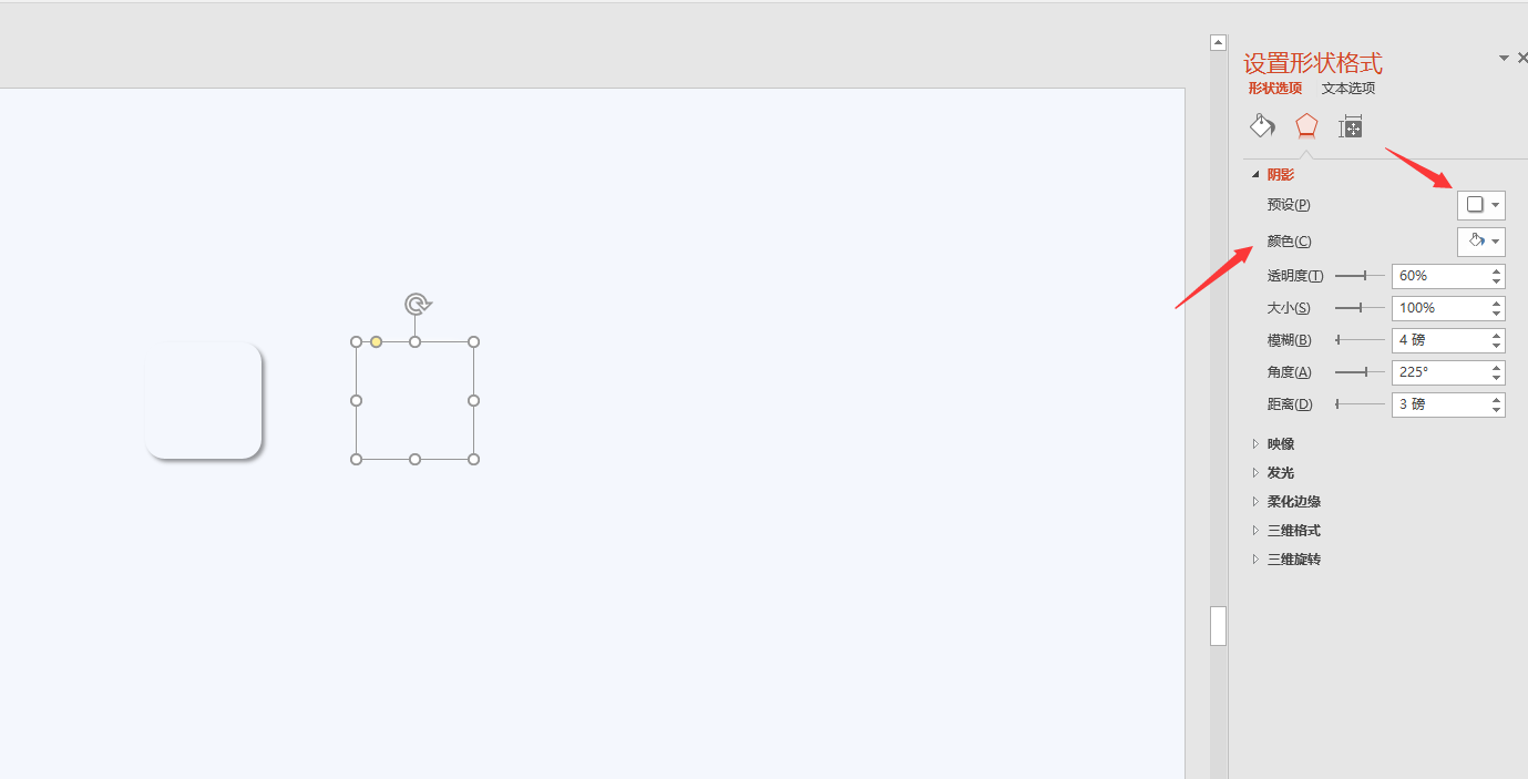 第二步:再复制一个刚刚做好的矩形,右键设置形状格式-阴影效果选择外部左上斜偏移-阴影颜色选择白色-然后调整一下阴影的大小;