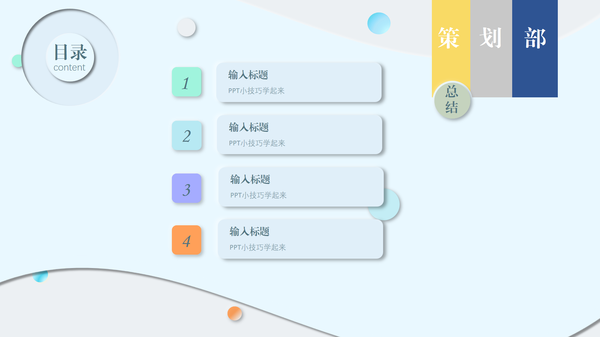 上图是我用PPT做的新拟态风格的一个年终总结目录版面(没有用任何网上下载的素材,纯粹是用PPT做的,原创作品,大家多多支持一下哈)。
